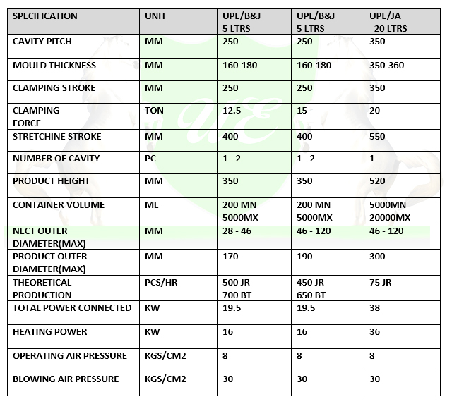 PET STRETCH BLOW MOULDING MACHINE UPTO 5 LTRS